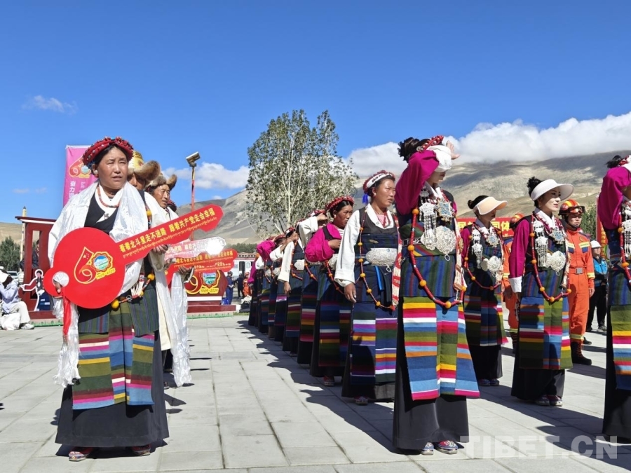 圖為儀式現(xiàn)場(chǎng),身著定日傳統(tǒng)服飾的村民正在合影留念