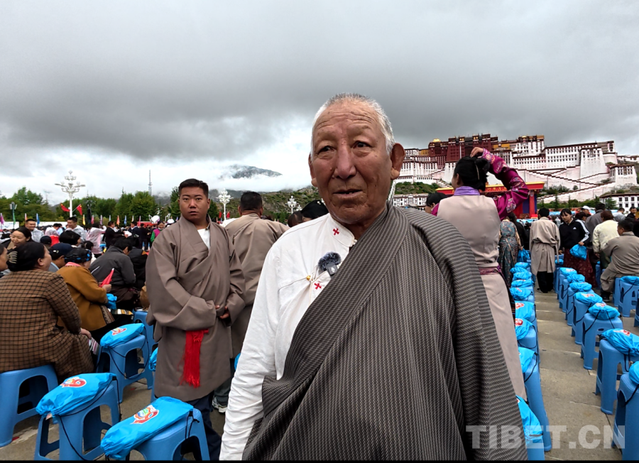 今日的布達(dá)拉宮廣場(chǎng)洋溢著濃厚的節(jié)日喜慶,慶?,F(xiàn)場(chǎng)化作一片歡樂(lè)的海洋。老年群眾精神矍鑠、笑容洋溢,眼中寫(xiě)滿對(duì)當(dāng)下生活的滿足與對(duì)未來(lái)美好生活的憧憬。