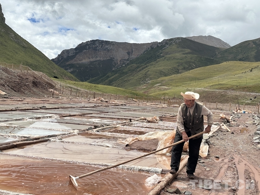 鹽田里,78歲的江羊巴桑正彎腰勞作,傳承著千年不變的制鹽技藝。江羊巴桑是白扎鹽場的一名鹽工,鹽是他們一家人賴以生存的東西,父輩靠鹽養(yǎng)活了他,他也靠著鹽養(yǎng)大了自己的十一個孩子。這位老鹽工曾在綜藝節(jié)目《種地吧》向觀眾展示了當?shù)厝斯欧ㄖ汽}的智慧。他在節(jié)目中表示:“為了養(yǎng)活一家老小,從小就開始制鹽,一直干到現(xiàn)在。以后無論是我的兒子,還是這個地區(qū)的年輕人,希望未來可以學(xué)習(xí)并延續(xù)好這一制鹽技藝?!苯虬蜕:唵味鎿吹脑竿褪窍M@種傳統(tǒng)的手工制鹽能夠代代相傳。