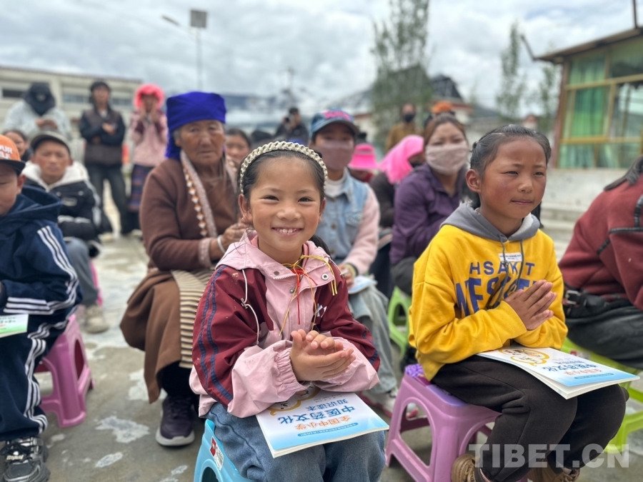 圖為旁多鄉(xiāng)寧波村兒童收到實踐團(tuán)發(fā)放的中醫(yī)藥文化讀本