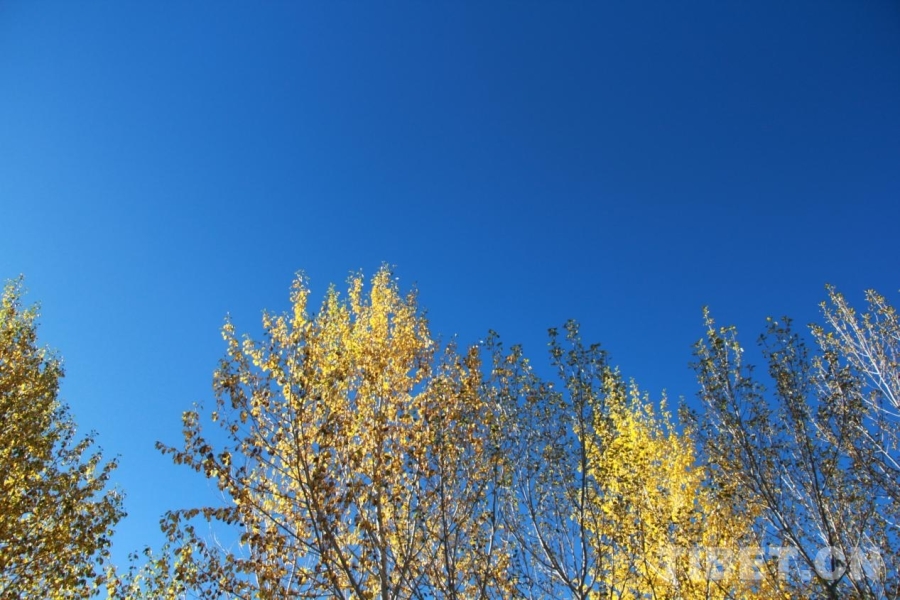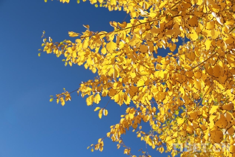 圖為阿里獅泉河鎮(zhèn),秋葉與藍(lán)天 攝影:趙釗