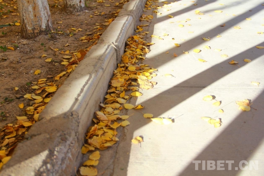 圖為阿里獅泉河鎮(zhèn),落葉滿(mǎn)地 攝影:趙釗