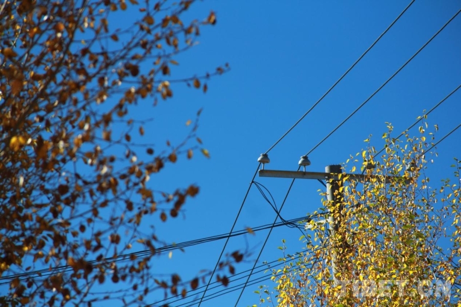 ?圖為阿里獅泉河鎮(zhèn),秋葉與天線(xiàn)仿佛五線(xiàn)譜與音符 攝影:趙釗