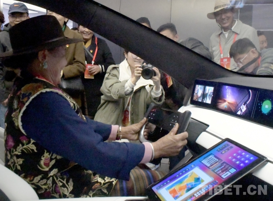 圖為西藏林芝波密縣基層干部體驗智能汽車駕駛 攝影:唐召明