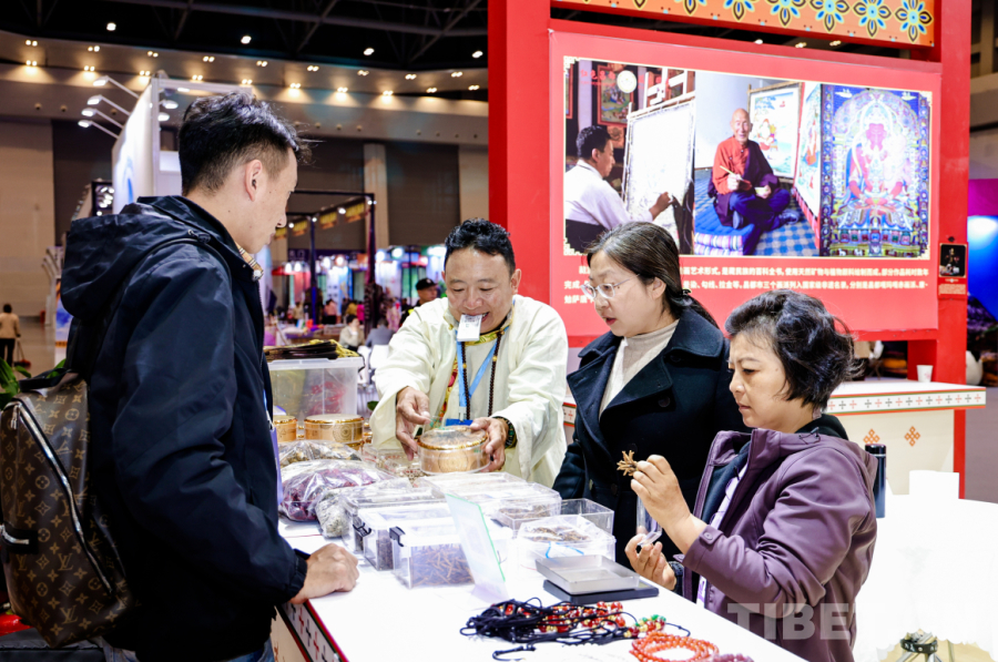 記者走進(jìn)昌都展館,整個(gè)展館呈現(xiàn)藏族傳統(tǒng)建筑的典型特征,厚重的墻體、錯(cuò)落有致的布局以及富有層次感的屋頂線條,精心融入康巴文化符號。昌都文旅攜9家非遺企業(yè),全方位展示唐卡、藏香、唐卡漆畫、民族手工飾品、蟲草、貝母、藏紅花等琳瑯滿目的文旅產(chǎn)品,進(jìn)館參與互動(dòng)、咨詢的游客絡(luò)繹不絕。