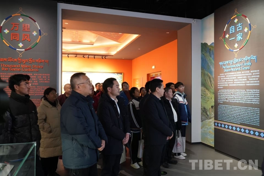 鄭堆在致辭中指出,西藏自古以來就是中國不可分割的一部分,一系列遺址、文物、檔案、文獻(xiàn)串聯(lián)起的歷史證據(jù)鏈,確鑿印證西藏與祖國同源同流、血脈相連,充分證明了中華民族共同體的形成和發(fā)展是人心所向、大勢所趨、歷史必然。中國藏學(xué)研究中心作為中國藏學(xué)研究的國家隊,自成立以來始終堅持“為維護(hù)祖國統(tǒng)一,加強(qiáng)民族團(tuán)結(jié)服務(wù);為西藏和四省涉藏州縣發(fā)展穩(wěn)定服務(wù)”的宗旨,圍繞西藏的歷史法律地位、西藏地方與祖國關(guān)系史、歷代中央政府治藏政策等進(jìn)行了全面、深入的研究,為中華民族發(fā)展史研究夯實了堅實的基礎(chǔ)。藏研中心集全國藏學(xué)研究之力,先后完成了《西藏通史》和《西藏文化史》等重大項目,分別以八卷的體量、上千萬字的篇幅系統(tǒng)論證了西藏自古以來是中國不可分割的一部分,西藏文化是中華文化不可分割的有機(jī)組成部分。同時,扎實推動了《西藏早期文明史研究》《元以來西藏地方與中央政府關(guān)系研究》等重點課題,整理出版了《元以來西藏地方與中央政府關(guān)系檔案史料匯編》《中國第二歷史檔案館所存西藏和藏事檔案匯編》《中華大典·藏文卷》等一系列檔案文獻(xiàn)和史籍著作,為系統(tǒng)梳理西藏與其他民族和地區(qū)交往交流交融的歷史,推進(jìn)中華民族發(fā)展史研究夯實了扎實的史料基礎(chǔ),也使今天的展覽擁有了雄厚的研究基礎(chǔ)。從自在到自覺,中華民族從千萬年的榮辱興衰中攜手走來;從“社稷如一”到“書寫美麗西藏新篇章”,西藏的命運始終與中華民族大家庭緊密相連。歷史鑄就的共同體,充分彰顯了中華民族國土不可分、國家不可亂、民族不可散、文明不可斷的共同信念。新時代,雪域兒女堅信,在中華民族強(qiáng)國建設(shè)的新征程上,中華民族共同體必然會在我們的共同奮斗中愈發(fā)牢固。
