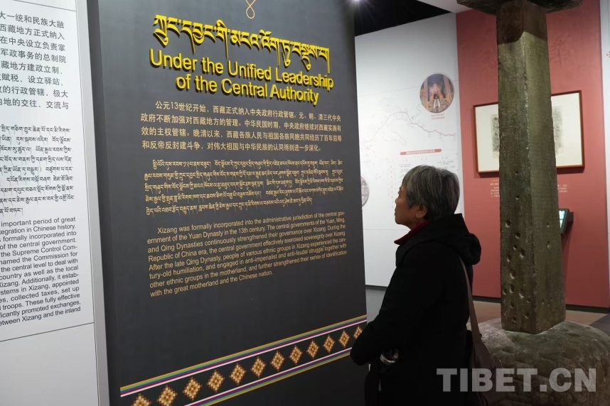 據(jù)悉,此次展覽通過467件實物、171幅圖片、14個多媒體、4個模型、5個場景系統(tǒng)梳理了西藏地方與祖國關(guān)系發(fā)展的歷史脈絡(luò),既是對西藏自治區(qū)成立60年來輝煌成就的時代禮贊,更是對雪域高原與祖國千百年來血脈相連、同呼吸共命運的歷史實證。(中國西藏網(wǎng) 記者/登真巴珍)