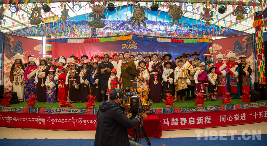 中國西藏網(wǎng)訊 1月16日至17日,在2026年藏歷火馬新年來臨之際,一場主題為“金馬迎春·祥瑞熱水”的藏歷新年晚會在青海省海西蒙古族藏族自治州都蘭縣熱水鄉(xiāng)賽什堂村舉辦并完成錄制。晚會由海西州融媒體中心聯(lián)合熱水鄉(xiāng)黨委、政府及都蘭縣賽瓊鍋莊藏族諺語協(xié)會共同打造,所有節(jié)目均取材于當?shù)剞r(nóng)牧民生活與藝術傳統(tǒng),生動展現(xiàn)了新時代農(nóng)牧民的精神風貌與文化自信。