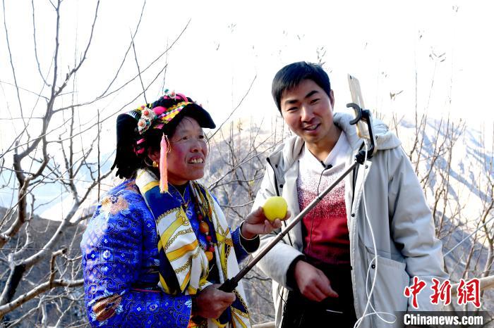 午飯后,張飛按約來(lái)到畢含珍家,幾位身著傳統(tǒng)藏袍的熱心鄰居正在院中幫忙裝箱蘋(píng)果。張飛先拍攝了一條短視頻,隨后又支起穩(wěn)定支架,將鏡頭對(duì)準(zhǔn)堆滿院落的蘋(píng)果,開(kāi)始直播,最高峰時(shí)有5000人同時(shí)在線觀看。不到40分鐘,第一批裝箱的40箱蘋(píng)果便被網(wǎng)友一搶而空。