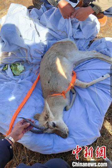 圖為受傷的國家二級保護(hù)野生動物雄性藏原羚。達(dá)日縣森林公安局供圖
