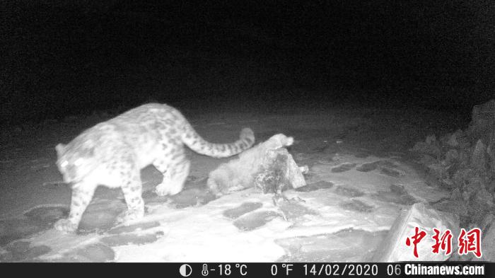 視頻截圖為紅外相機(jī)在青海省海北藏族自治州海晏縣夏格爾山拍攝到的雪豹清晰影像。