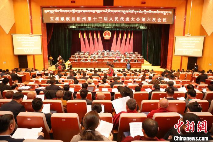 圖為青海省玉樹藏族自治州第十三屆人民代表大會(huì)第六次會(huì)議現(xiàn)場(chǎng)?!“?攝
