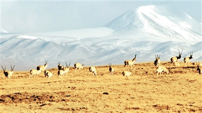 保護站附近正在覓食的藏羚羊。