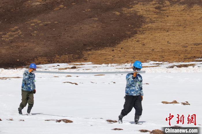 青海省玉樹(shù)藏族自治州稱(chēng)多縣境內(nèi)的覺(jué)頂山山頂海拔5310米,“三區(qū)兩州”玉樹(shù)地區(qū)電網(wǎng)工程建設(shè)稱(chēng)多110千伏輸變電二回線路將在這里組立一基鐵塔。4月10日,天剛蒙蒙亮,項(xiàng)目負(fù)責(zé)人韓建青便帶著施工隊(duì)徒步趕向位于半山腰的塔基處。積雪已經(jīng)淹沒(méi)了腳踝,一腳踩下去,能清晰的感受到冰雪觸及皮膚帶來(lái)的刺痛。“要想到達(dá)塔基處可不容易啊,看到我們背的鐵鍬了嗎,那不是挖地的,那是開(kāi)路用的?!蹦杲?0歲的韓建青氣喘吁吁地說(shuō)。