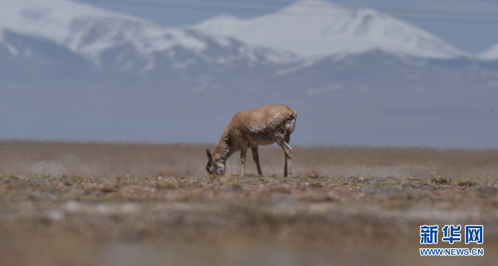 5月16日,一只藏羚羊在可可西里地區(qū)活動(dòng)。新華社記者 吳剛 攝