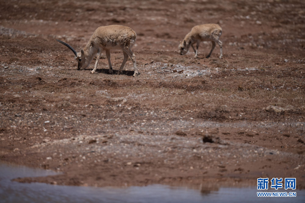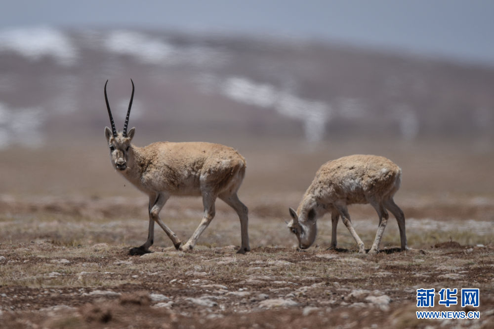 5月15日,兩只藏羚羊在可可西里地區(qū)活動(dòng)。新華社記者 吳剛 攝