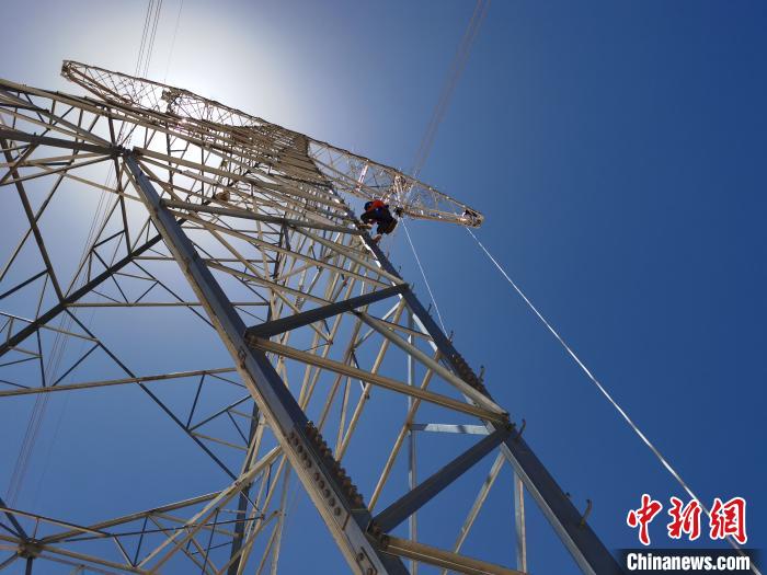 5月17日,在海拔4700多米的五道梁地區(qū),在“電力天路”±400千伏柴拉線636號塔上,3名作業(yè)人員正在更換絕緣子串,塔下6名作業(yè)人員在全力配合,工作負(fù)責(zé)人馬興義正仰頭觀察著塔上的一舉一動(dòng),時(shí)不時(shí)提醒工作注意事項(xiàng)。