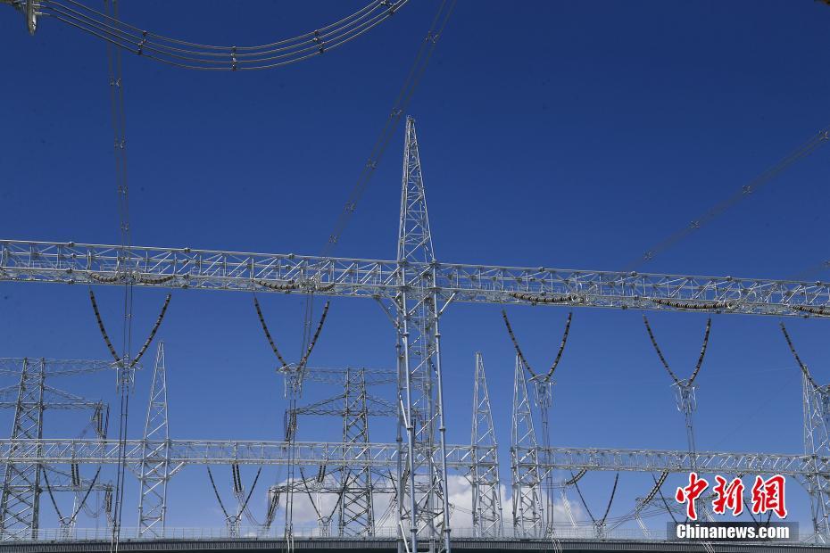 6月23日拍攝的青海省海南藏族自治州共和縣±800千伏特高壓青南換流站內(nèi)的門型構架。中新社記者 馬銘言 攝