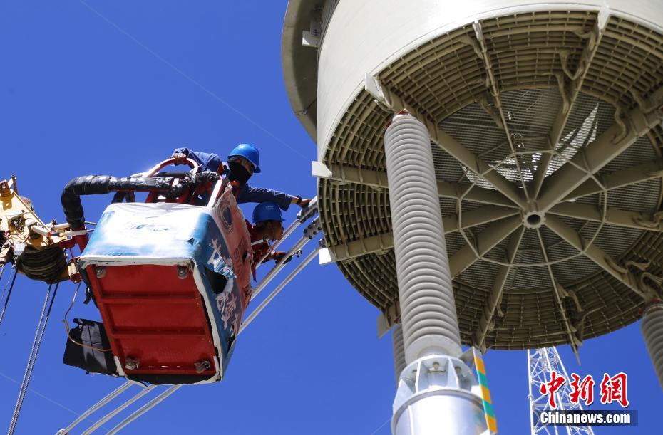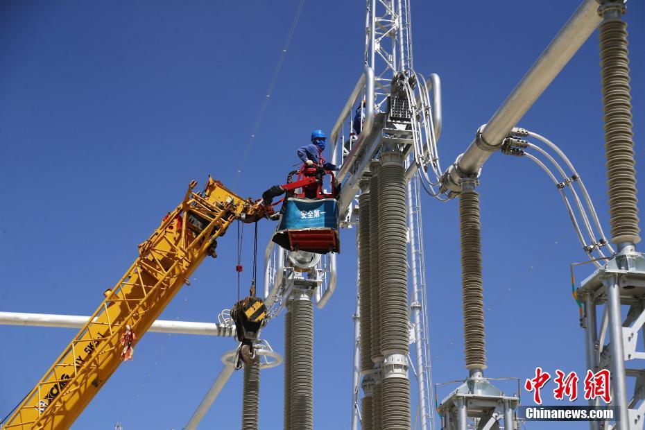 6月23日,在青海省海南藏族自治州共和縣±800千伏特高壓青南換流站,工作人員正在調試設備。中新社記者 馬銘言 攝
