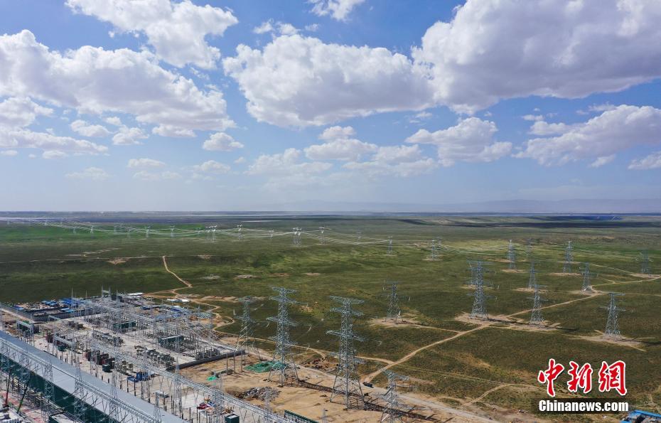 6月23日,航拍青海省海南藏族自治州共和縣±800千伏特高壓青南換流站工程線路。中新社記者 馬銘言 攝