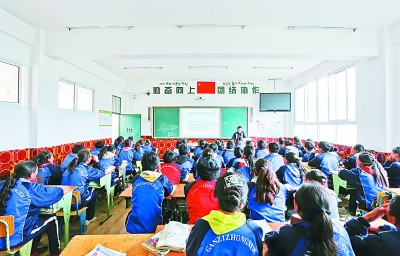 甘孜縣民族中學的學生在多媒體教室上課。劉炳科攝