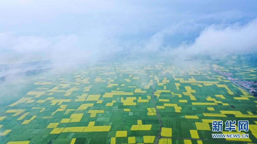 時下正值高原油菜花競相綻放的季節(jié),在青海省海北藏族自治州門源回族自治縣,金黃色的油菜花在高原藍天和云霧映襯下形成一幅壯麗畫卷,吸引游客前來觀賞。