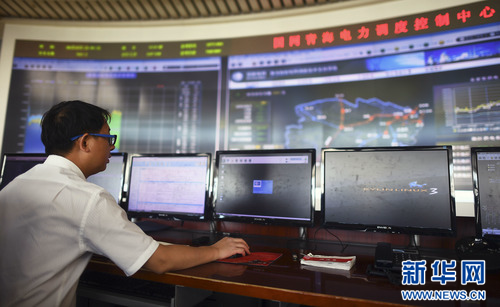 國家電網(wǎng)青海電力公司調(diào)度控制中心一名工作人員在查看發(fā)電實時數(shù)據(jù)(2019年6月12日攝)。新華社記者 張宏祥 攝