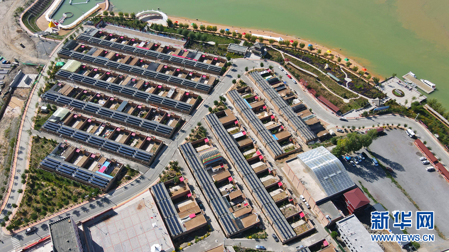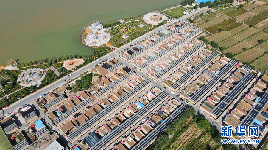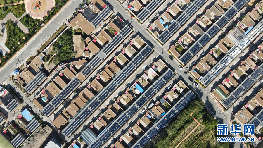 從高處俯瞰,屋頂上一片片光伏發(fā)電板排列整齊。新華網(wǎng) 卡婭梅朵 攝