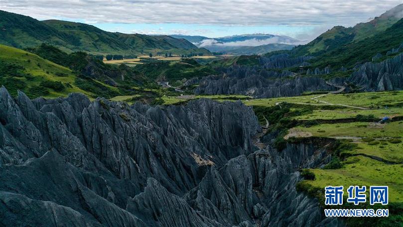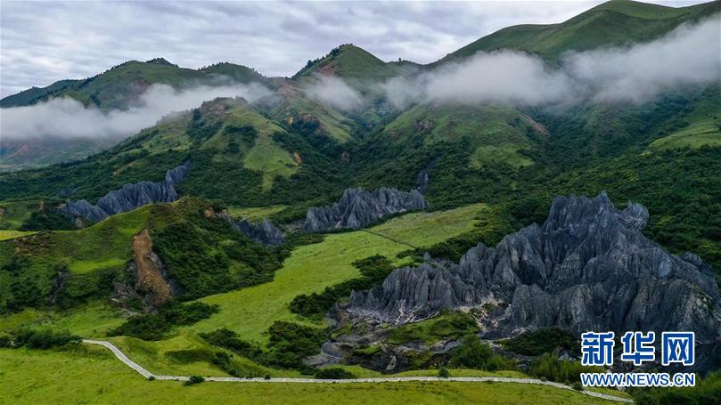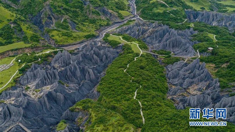 8月21日在四川省甘孜藏族自治州道孚縣拍攝的墨石公園一景(無(wú)人機(jī)照片)。新華社記者 王曦 攝