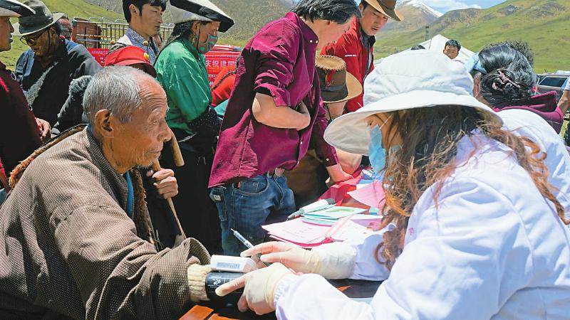 成都市金牛區(qū)援藏醫(yī)療隊在石渠縣組織義診活動。