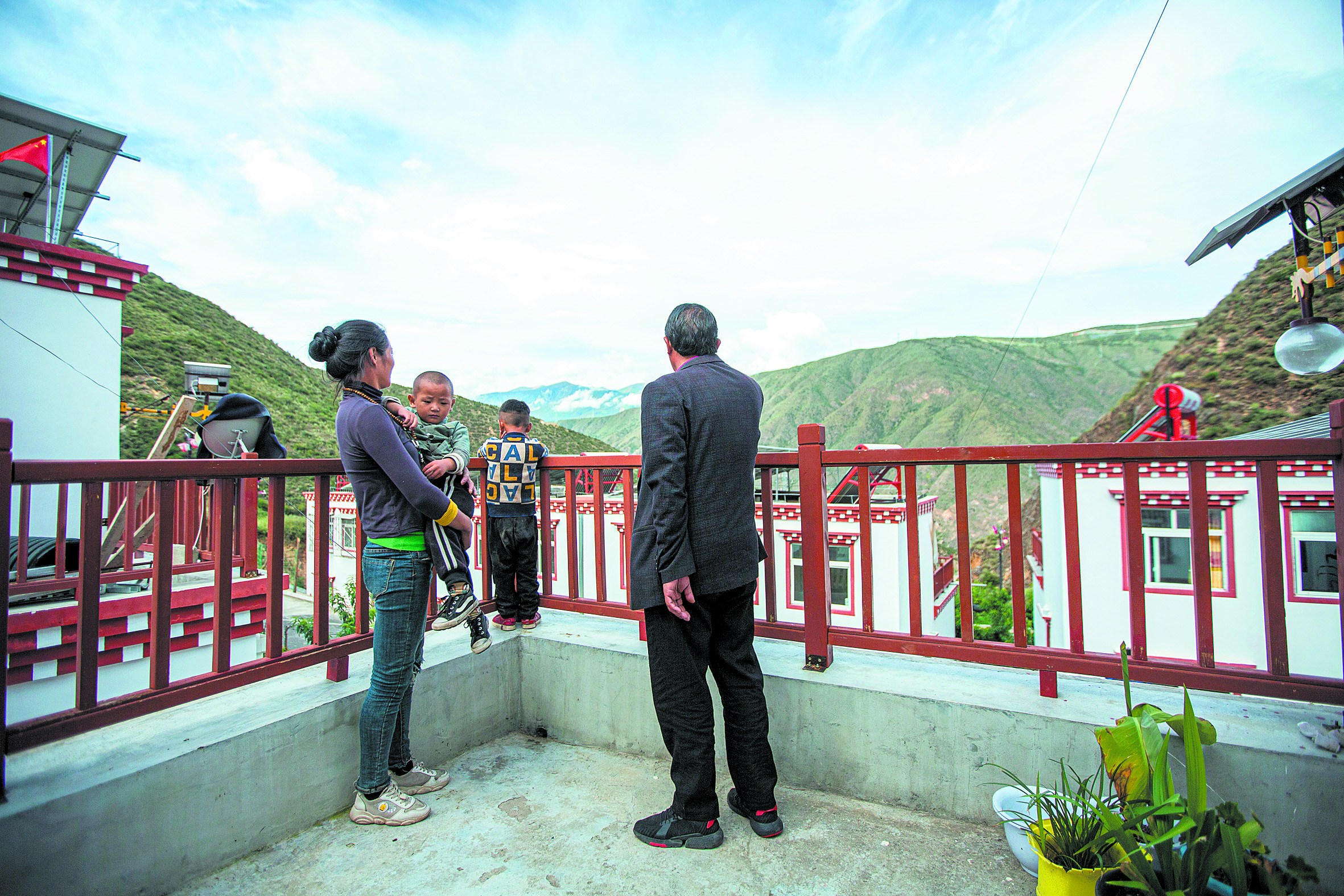 站在新房寬敞的陽臺上,阿擁(左)展望美好生活。錢虹辰 攝