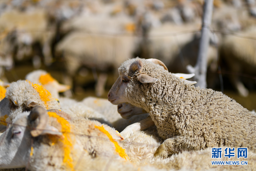 圖為金泰牧場(chǎng)內(nèi)的茶卡羊。新華網(wǎng) 宋忠勇 攝
