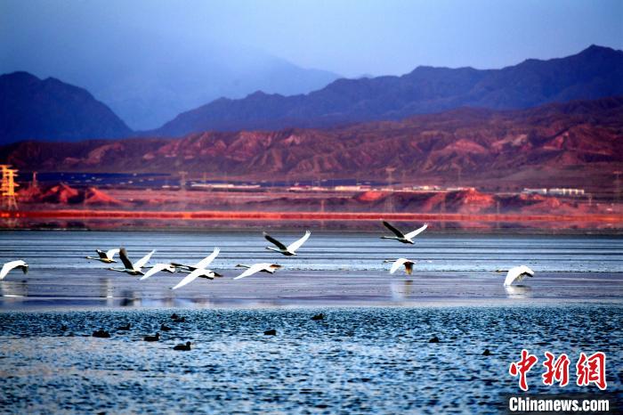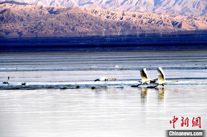 大天鵝飛抵柴達(dá)木盆地都蘭湖國(guó)家濕地公園“越冬”