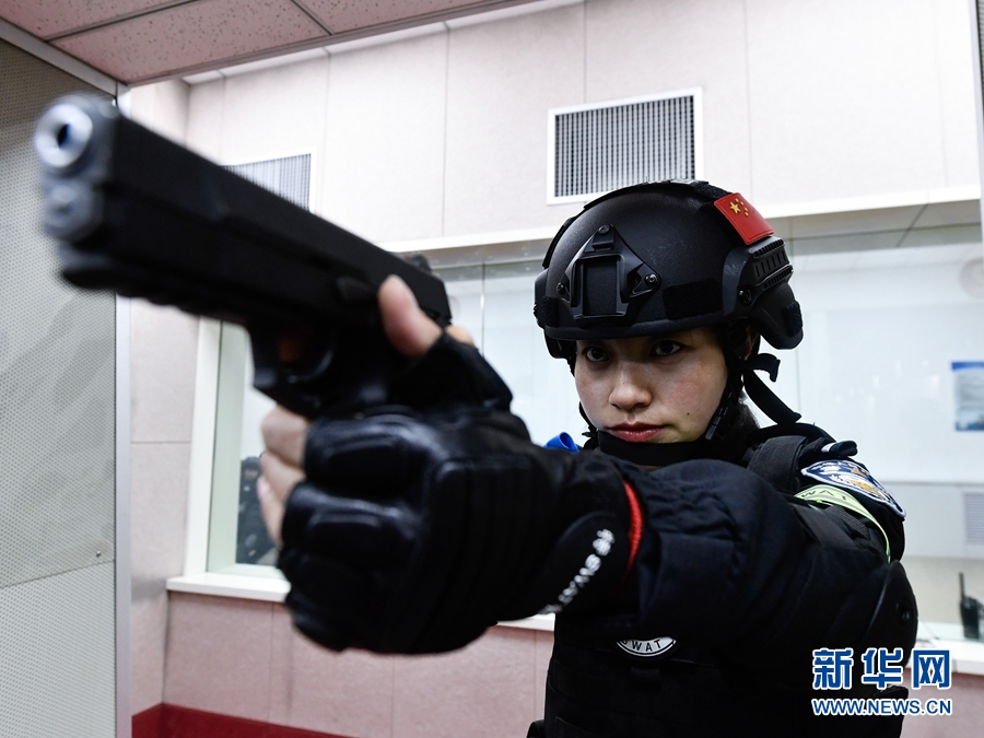 1月9日,青海省果洛藏族自治州公安局特警支隊直屬女子中隊的隊員在參加射擊訓練。新華社記者 張龍 攝