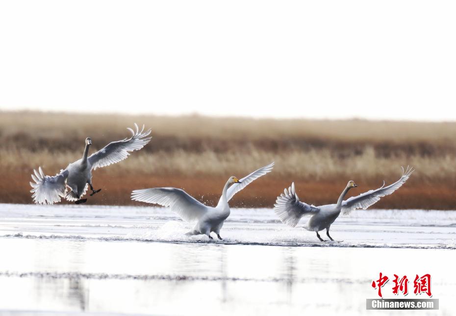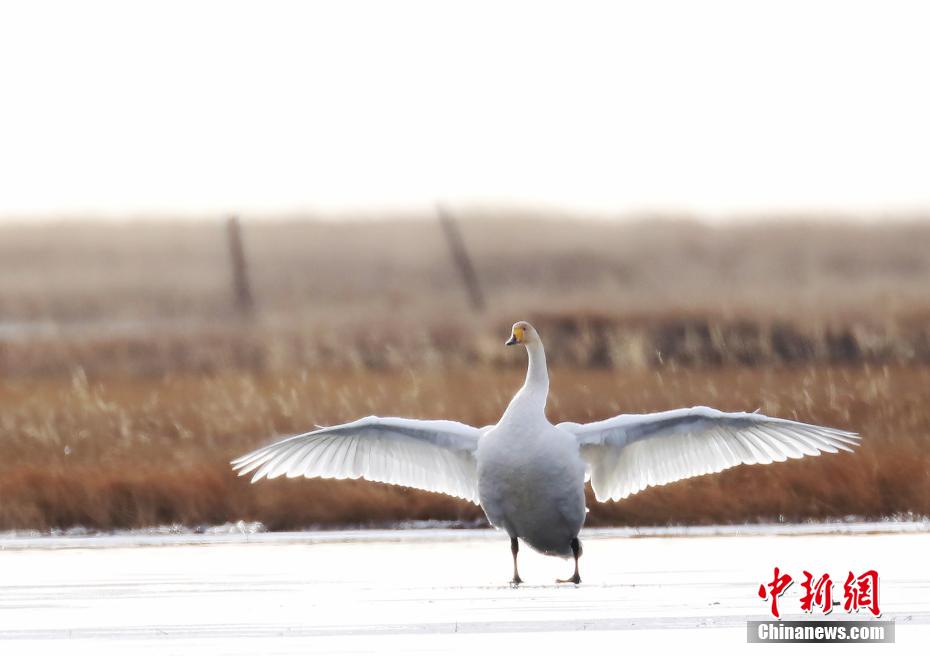 連日來,成群的野生大天鵝陸續(xù)飛臨四川省阿壩藏族羌族自治州若爾蓋縣高原小鎮(zhèn)麥溪鄉(xiāng)的洛賈瓊果河棲息越冬。這些跨越千里來此越冬的精靈讓洛賈瓊果河充滿了童話色彩,近百只天鵝在偌大的湖面上自由自在地覓食嬉戲,一會兒在天空翱翔,一會兒又成群結(jié)隊地在湖面上追逐,時而淺吟低唱,時而引吭高歌,時而振翅高飛,愜意十足,為冰封雪凍的高原濕地增添了些許靈動與生機,成為草原冰雪世界一道靚麗的風(fēng)景。