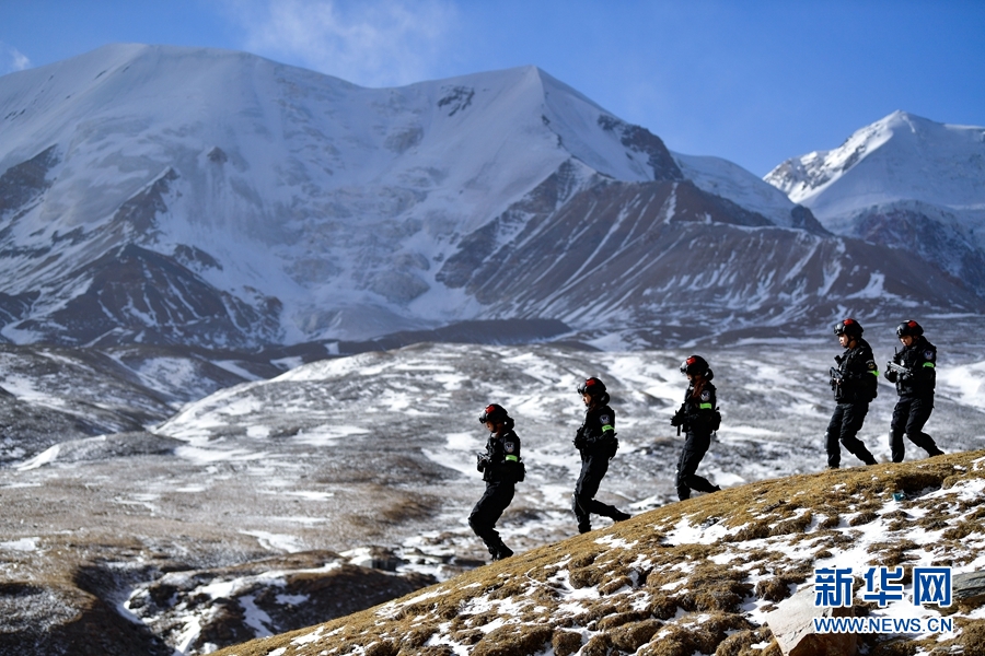 2月23日,青海省果洛藏族自治州公安局特警支隊直屬女子中隊的隊員們在阿尼瑪卿山腳下進行高原野外適應性訓練。在高寒缺氧、紫外線強、平均海拔4000米以上的青海省果洛藏族自治州,隊員們堅持進行騎馬、射擊、野外適應性訓練。據(jù)了解,果洛州公安局特警支隊直屬女子中隊成立于2017年9月,由9名女特警組成,年齡最小的隊員24歲。中新社記者 馬銘言 攝