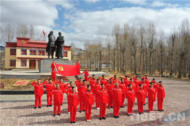 圖為在朱德總司令與五世格達(dá)活佛紀(jì)念館前重溫入黨誓詞