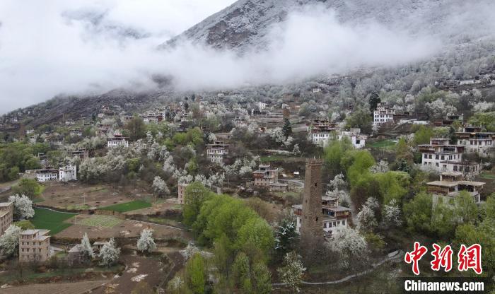 3月22日,素有“千碉之國”美譽的的四川甘孜藏族自治州丹巴縣雪后天晴,藏寨中大小形態(tài)各異的碉樓、涂抹成鮮艷的藏民居在白雪、梨花和綠樹掩映下構成一幅獨特的藏家春色圖,一季梨花如雪的開放,花如雪,雪似花,悠蕩在春風里,一道絕美的風景線讓四方游人陶醉。