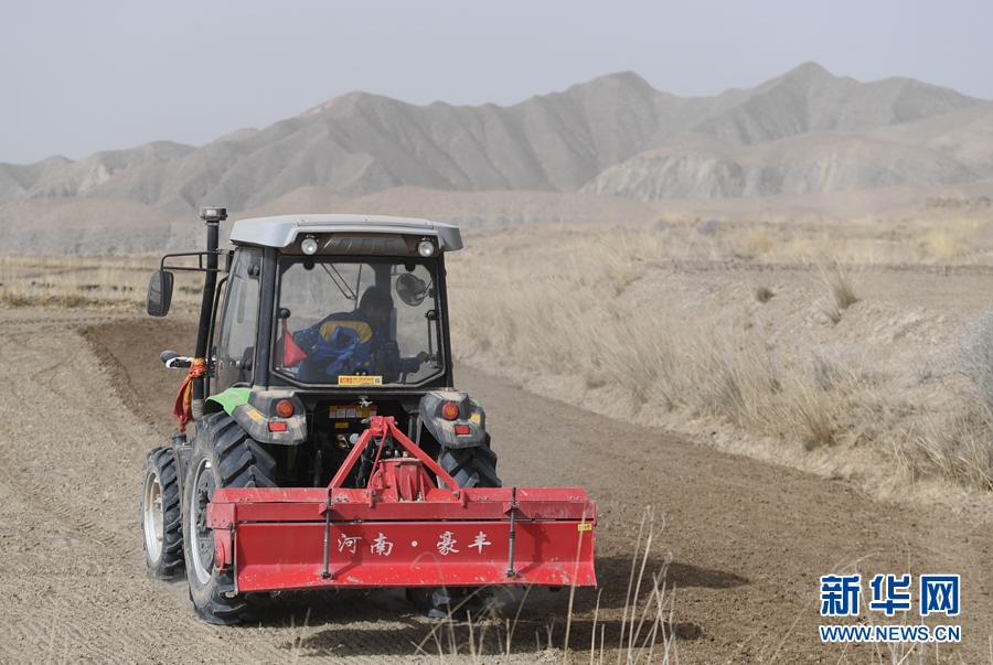 貴德縣河?xùn)|鄉(xiāng)查達(dá)村的春耕現(xiàn)場。新華網(wǎng) 潘彬彬 攝