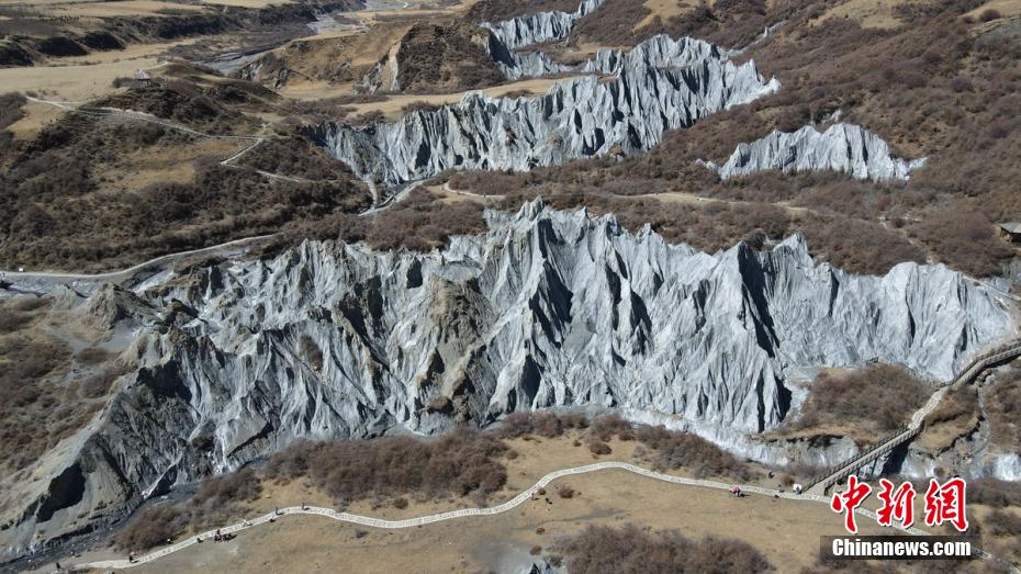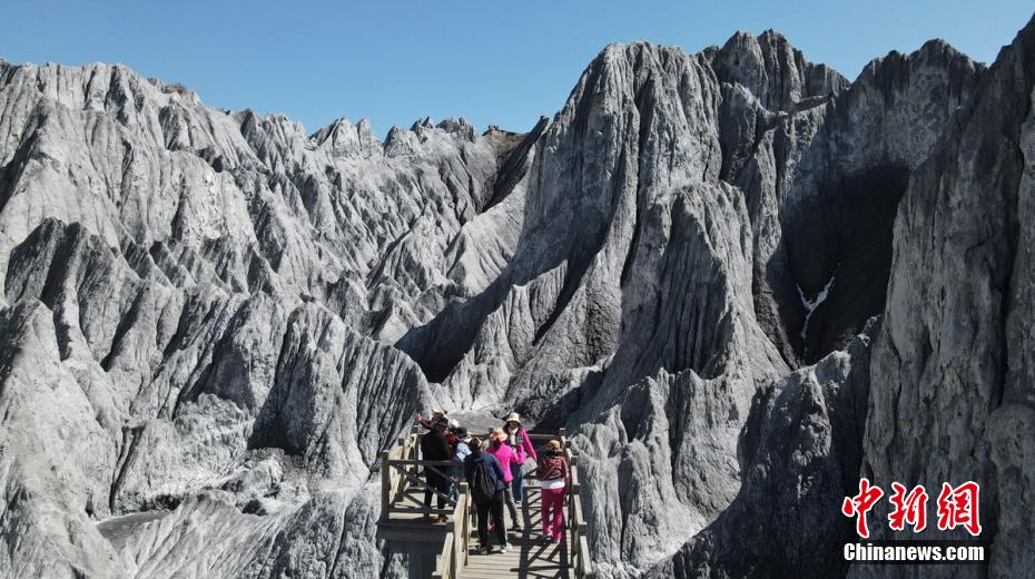 3月24日,四川省甘孜藏族自治州道孚縣八美鎮(zhèn)墨石公園吸引了不少游人前往打卡拍照。海拔約3400米的墨石公園總面積約5平方公里,埋藏于地下的巖土經(jīng)雨水長年沖刷、風(fēng)化等,自然形成了千姿百態(tài)的獨特地質(zhì)景觀。因“八美土石林”含鈣鹽,受空氣濕度影響,干燥季節(jié)呈淺灰、淺藍(lán)灰色,濕潤季節(jié)呈蒼墨色。劉忠俊 攝