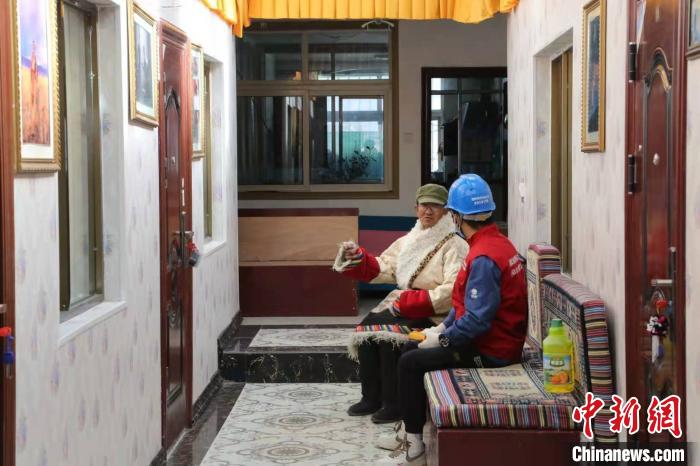 圖為青海海西大柴旦供電公司員工正在了解村民用電情況。焦興晨 攝