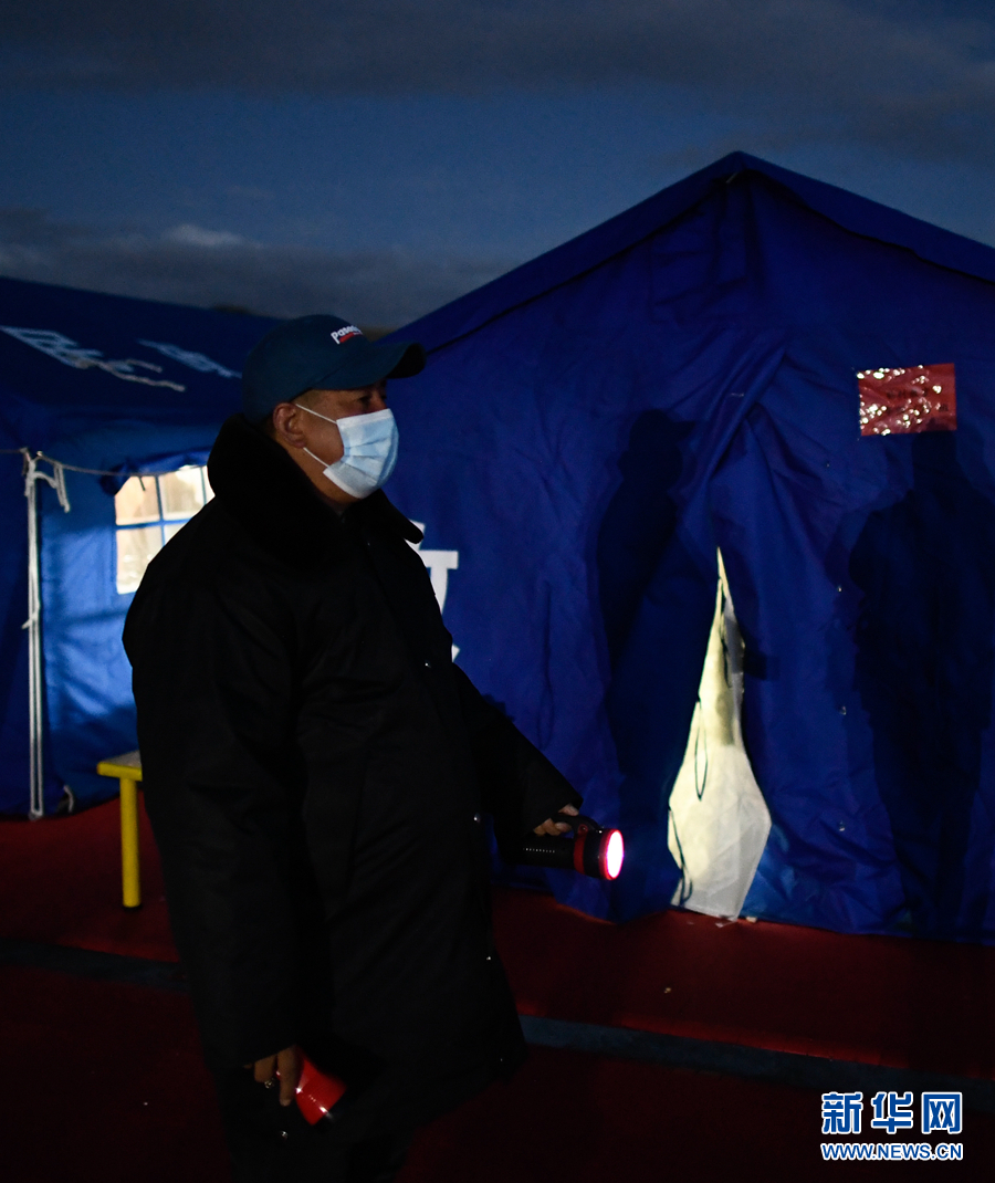 5月23日夜間,李加才讓在瑪多縣民族寄宿制中學(xué)操場(chǎng)的學(xué)生營(yíng)地巡查。新華社記者 張龍 攝