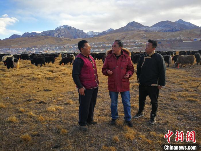 圖為宋仁德(中)在牧區(qū)查看牦牛養(yǎng)殖情況。受訪者供圖