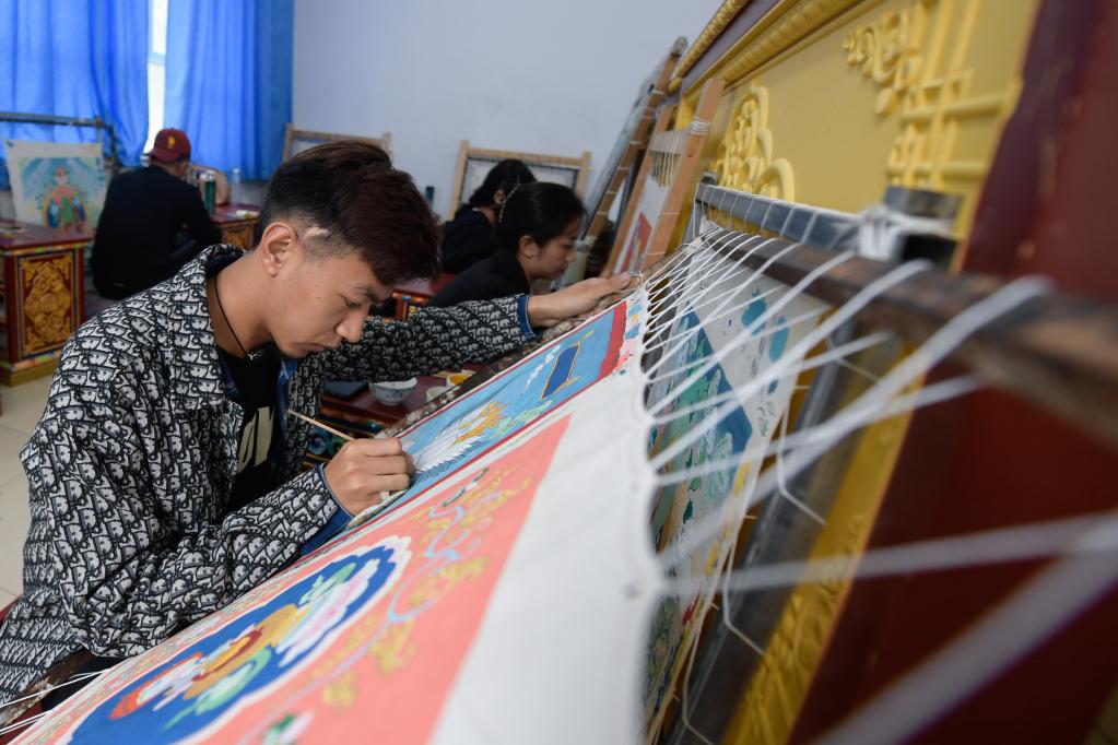 青海高校少數(shù)民族畢業(yè)生展出唐卡作品致敬母校