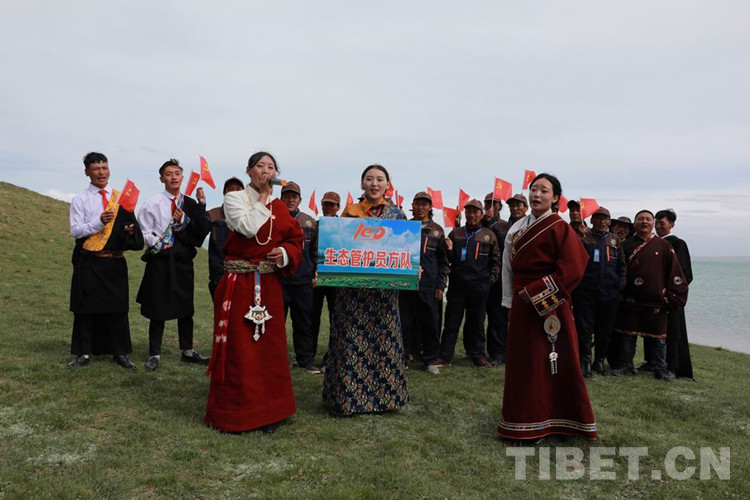 圖為扎陵湖畔青海牧民生態(tài)管護員方隊在歌唱 攝影:才仁當智