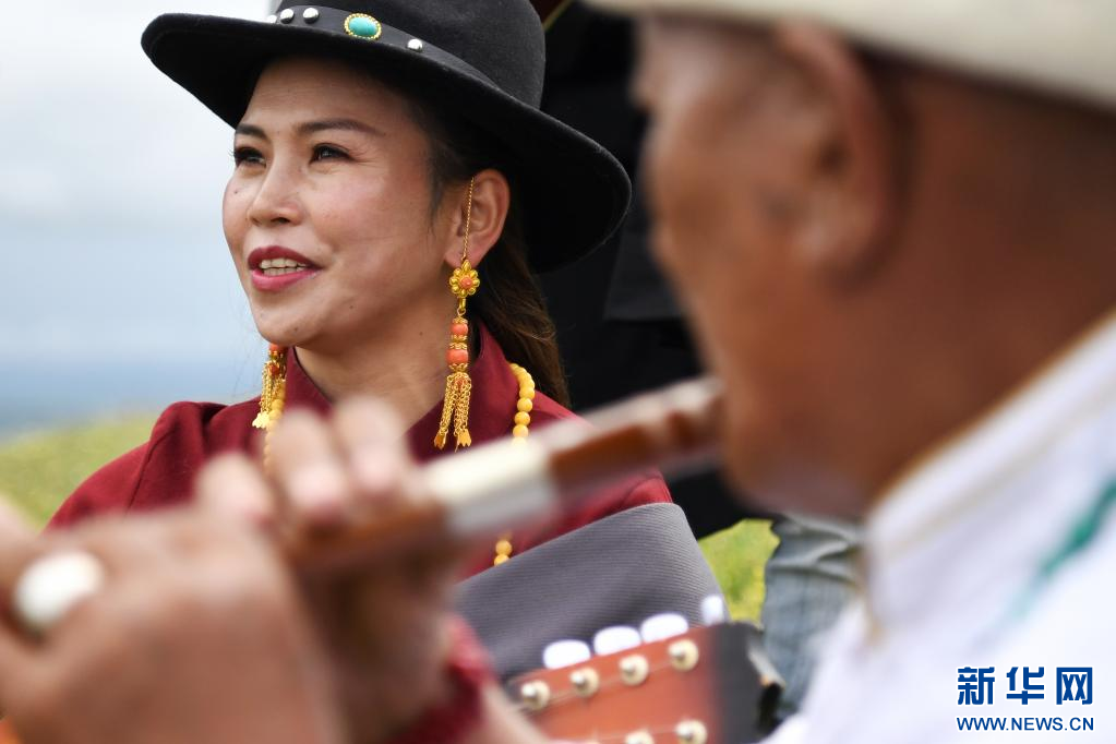 夏日的草原“流行樂” 格薩爾彈唱藝人在瑪曲草原上彈唱格薩爾(7月14日攝)。新華社記者 杜哲宇 攝