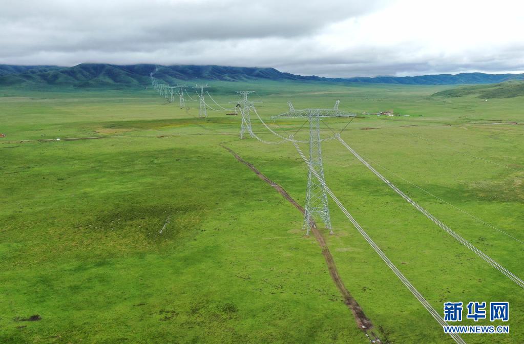6月17日在青海省黃南藏族自治州河南蒙古族自治縣拍攝的青豫特高壓直流工程。新華社 謝莉蓉 攝