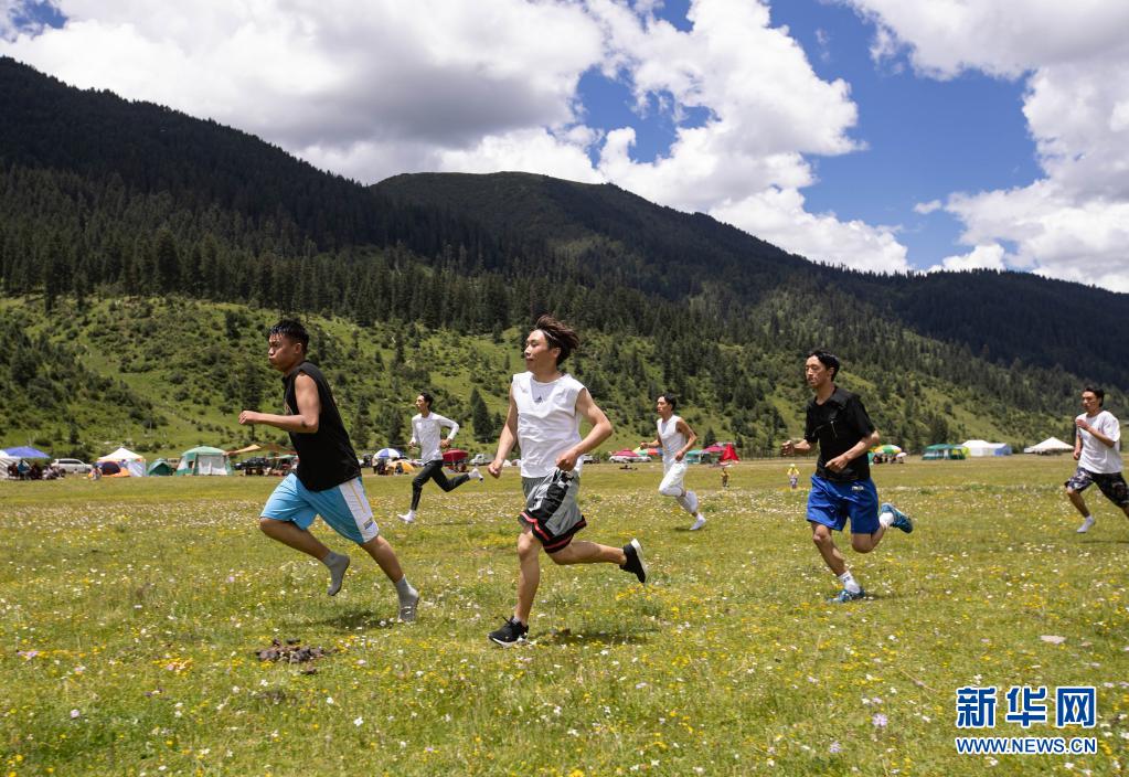 7月22日,在道孚縣玉科草原上,人們進(jìn)行草地短跑比賽。新華社記者 江宏景 攝