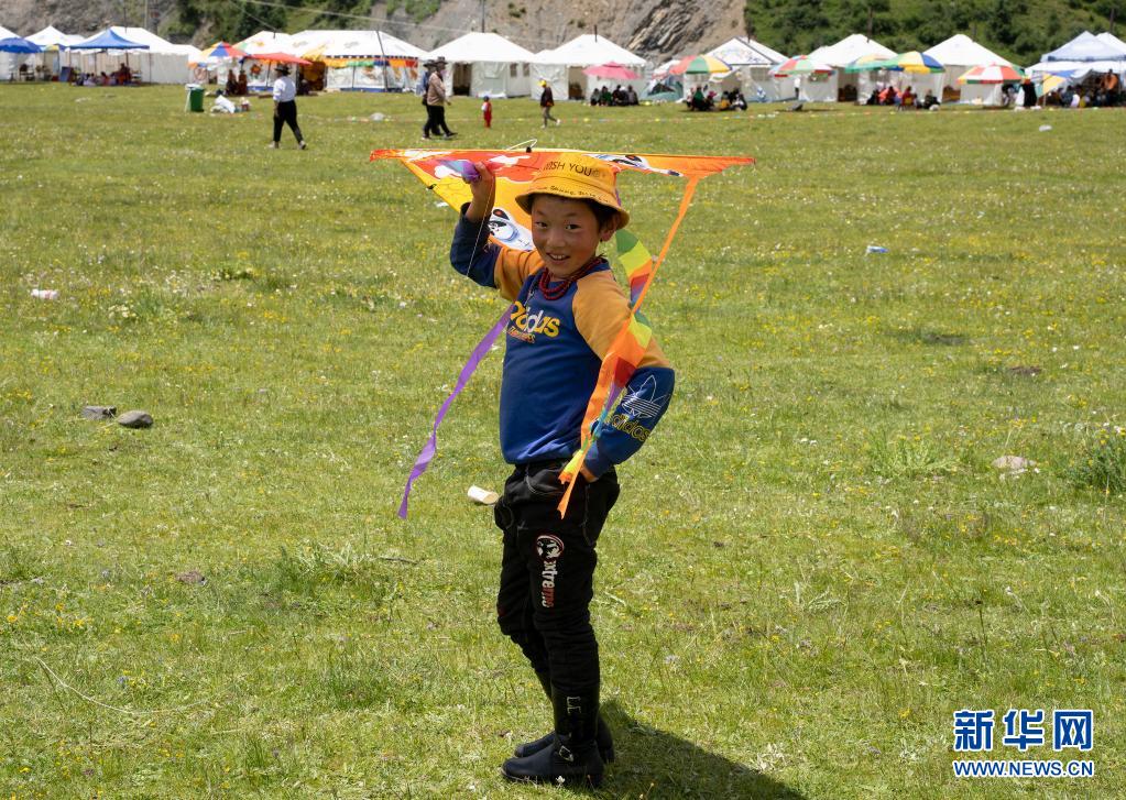 7月22日,小朋友在道孚縣玉科草原上放風(fēng)箏。新華社記者 劉夢(mèng)琪 攝