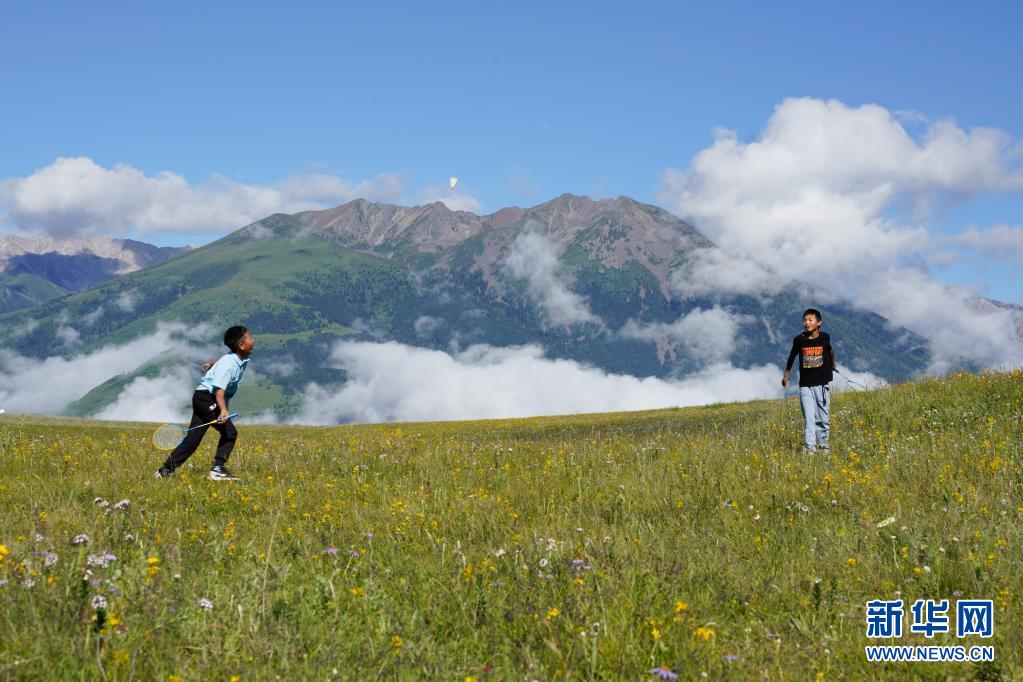 7月22日,小朋友在道孚縣白日山草原上玩耍。新華社記者 劉夢(mèng)琪 攝